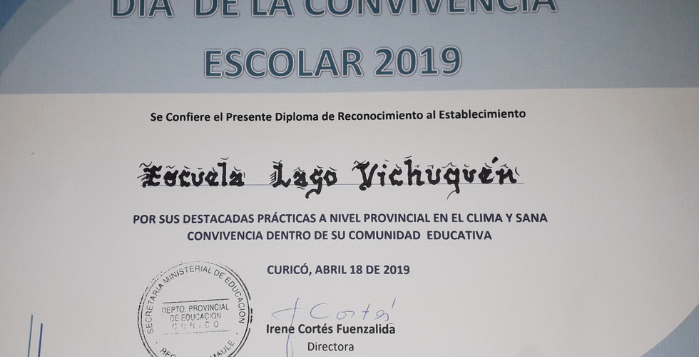 POR BUENAS PRÁCTICAS DE CONVIVENCIA ESCOLAR FUE DISTINGUIDA ESCUELA LAGO VICHUQUÉN
