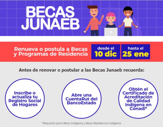 25 DE ENERO VENCE PLAZO PARA POSTULAR A BECAS JUNAEB