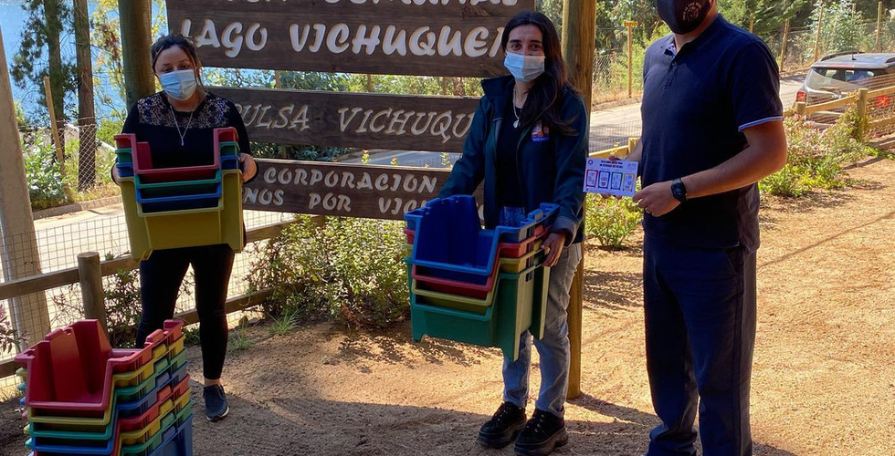 La comunidad del lago Vichuquen, reunidos en la Unión Comunal Lago, también se hizo presente con la entrega 7 pack de contenedores (28) de reciclaje, elementos que sin duda serán de gran utilidad para el trabajo que sobre esta materia realiza esta escuela.